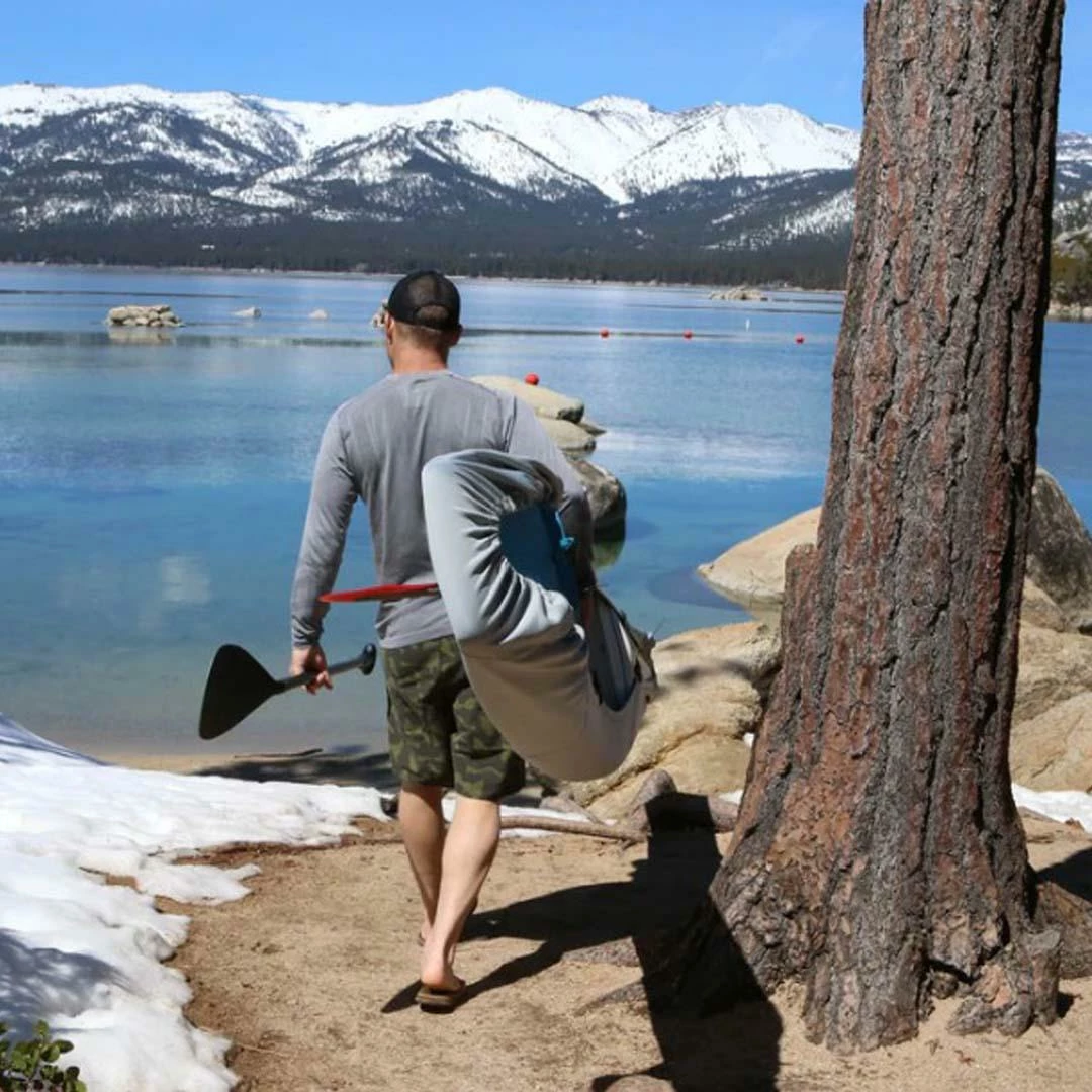 Keep your paddleboard in pristine condition with the Vamo 4 Way Stretch SUP Paddleboard Board Cover from Vamo. This UV protectant cover slips on and off your board easily, conforms to the nose of your board, and has a fin slot so you don’t have to remove your fin when putting on the cover. The double stitched enclosure and 360 degree bungee make for a custom fit that stays snug during transportation. With double lined nose and tail for durability, this cover is a must-have for any paddleboarder.