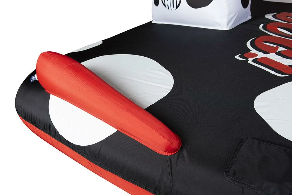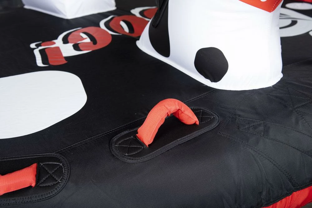 The Dog offers a versatile riding experience with its seating options. The center rider gets to enjoy a comfortable seated position on the deck of the tube, providing an excellent view of the surroundings and a thrilling ride. The outside riders can lay in the prone position on either side, adding an extra level of excitement as they skim across the water’s surface.