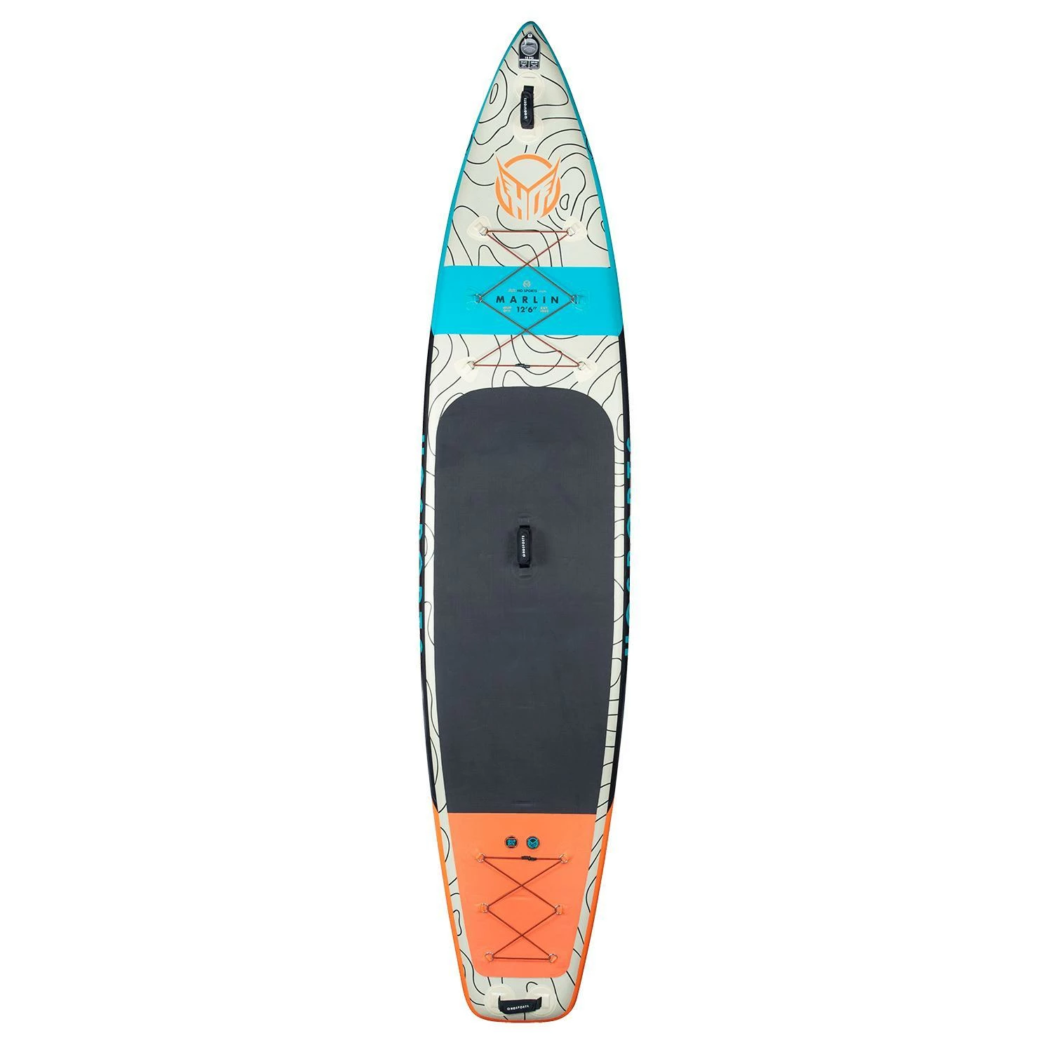 The HO SPORTS iSUP 12’6″ Marlin Stand Up Paddle Board is a high-end touring paddleboard designed with performance in mind. Utilizing our new Nano Stitch Construction, we’re able to build a board that is 30% stiffer and 30% lighter than standard inflatable paddleboards. The Marlin features a longer and narrower shape for high performance. This efficient, hydrodynamic shape will allow you to reach new speeds on your paddling adventures. The marine-grade deck pad delivers a non-slip traction surface that is also comfortable underfoot. Another awesome feature of the Marlin is the dual double-x bungee zones which double your storage capacity by allowing you to store gear on the front and the back of your SUP. The oversized, single-center fin provides excellent tracking as well as lateral stability.