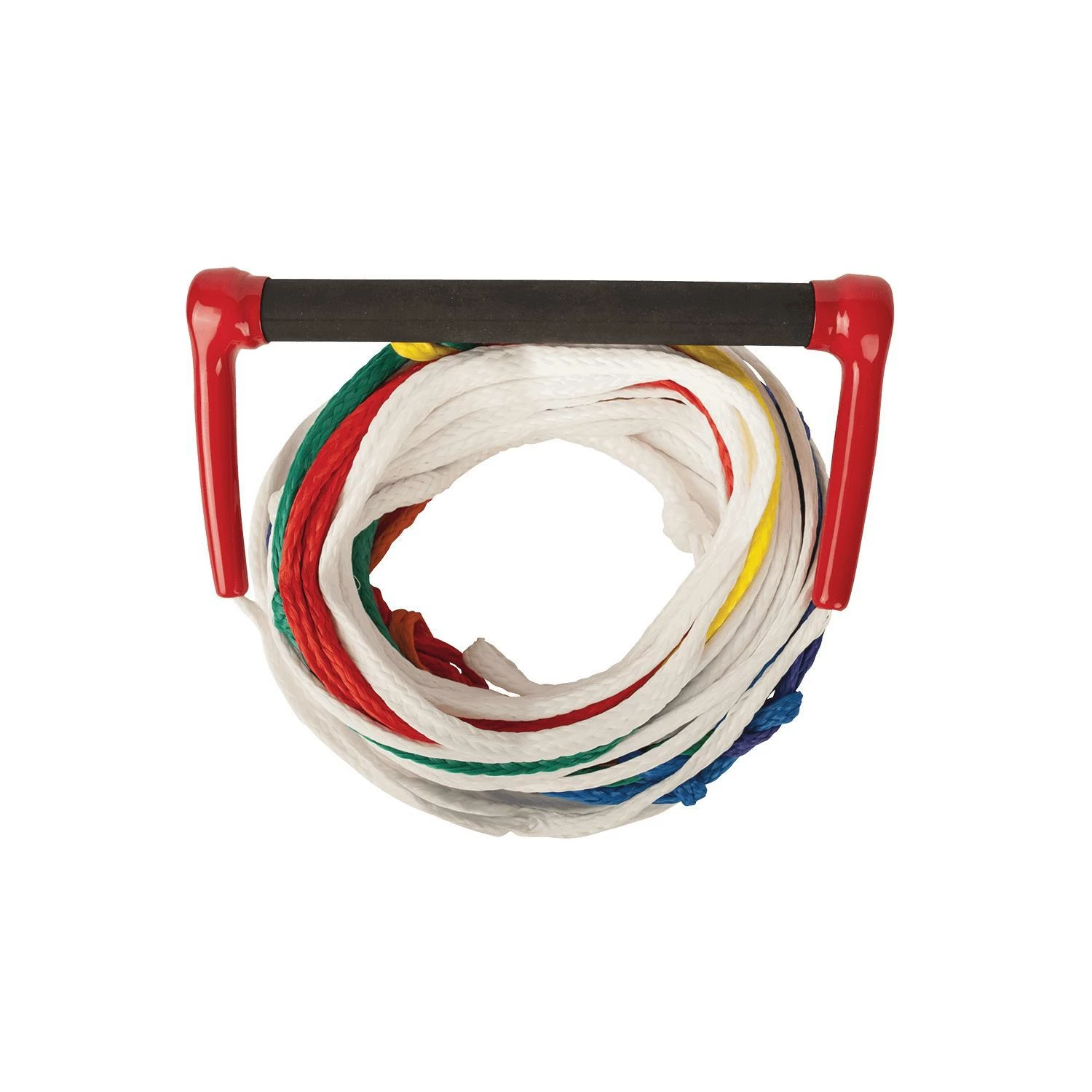 What sets this package apart is the 70′ mainline, which comes in either an 8-section or 5-section configuration. The 8-section mainline features AWSA color-coded rope lengths, ranging from longline to 39.5′ off (10.75m). This allows users of all skill levels, from beginners to super advanced, to utilize a single rope for their skiing needs. It’s incredibly convenient and eliminates the need for multiple ropes.