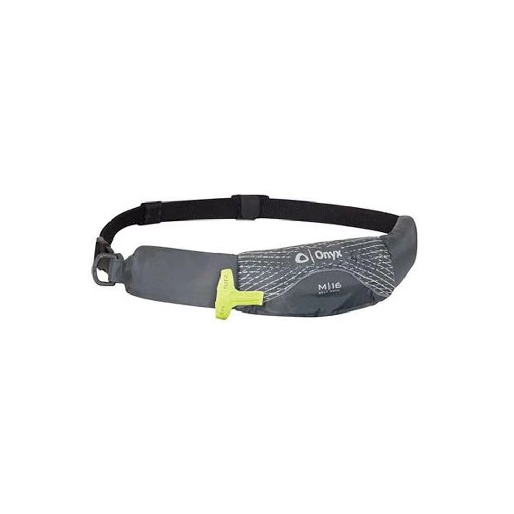 The Onyx M-16 Manual Inflatable Belt Pack Reduced Profile is a must-have for any water activity. With a 16 gram CO2 charge, it provides 17 lbs. of buoyancy. The oral inflation tube can be used by the wearer to provide additional buoyancy up to 26.5 lbs. It’s extremely low profile and secure pull clips to life jacket allow for quick release when pulled for inflation. The 1” buckle and body belt are made of durable materials for a long lasting product. The 200 denier nylon oxford protective cover ensures your safety while you’re enjoying your time in the water.
