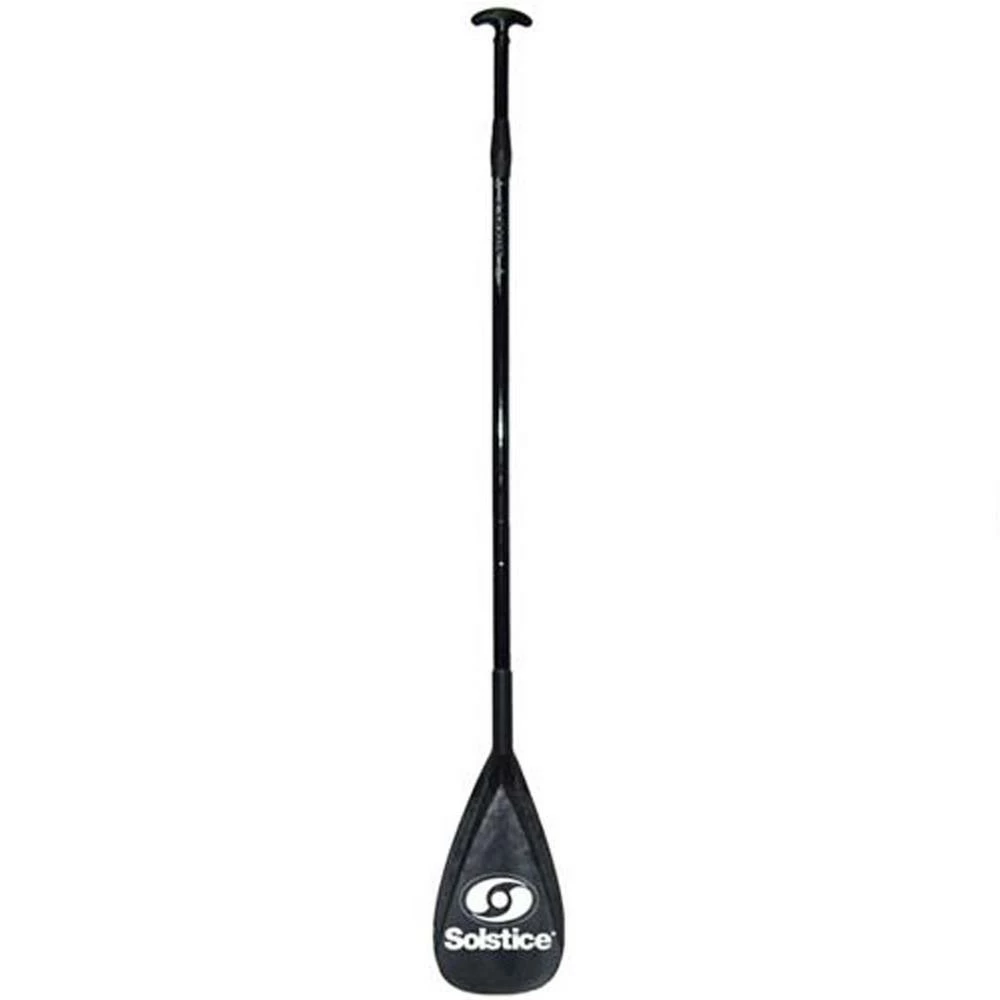 The Solstice 3-Piece Composite SUP Paddle 65-84″ is a great piece of equipment while you go stand up paddle boarding. Made of carbon fiber this paddle is very strong, allowing you to paddle through waters with ease. Its light weight construct lets you paddle for a long time without over exertion. The paddles unique adjustable compression system design can be adjusted from 65″ to 84″ (165 cm to 213.4 cm), so one paddle can be used by your entire family. Its ergonomic rounded handle gives a more comfortable grip in any position. Plus, its cupped blade offers you a more efficient and enhanced thrust with minimal effort. This SUP paddle is ideal for Fiji or Bora Bora inflatable paddle boards (see SKU: SOTBP). When you need to pack it in for the day the paddle breaks down into three pieces for easy transport and storage. So next time you go paddle surfing take the Solstice Adjustable Composite SUP Paddle along with you.