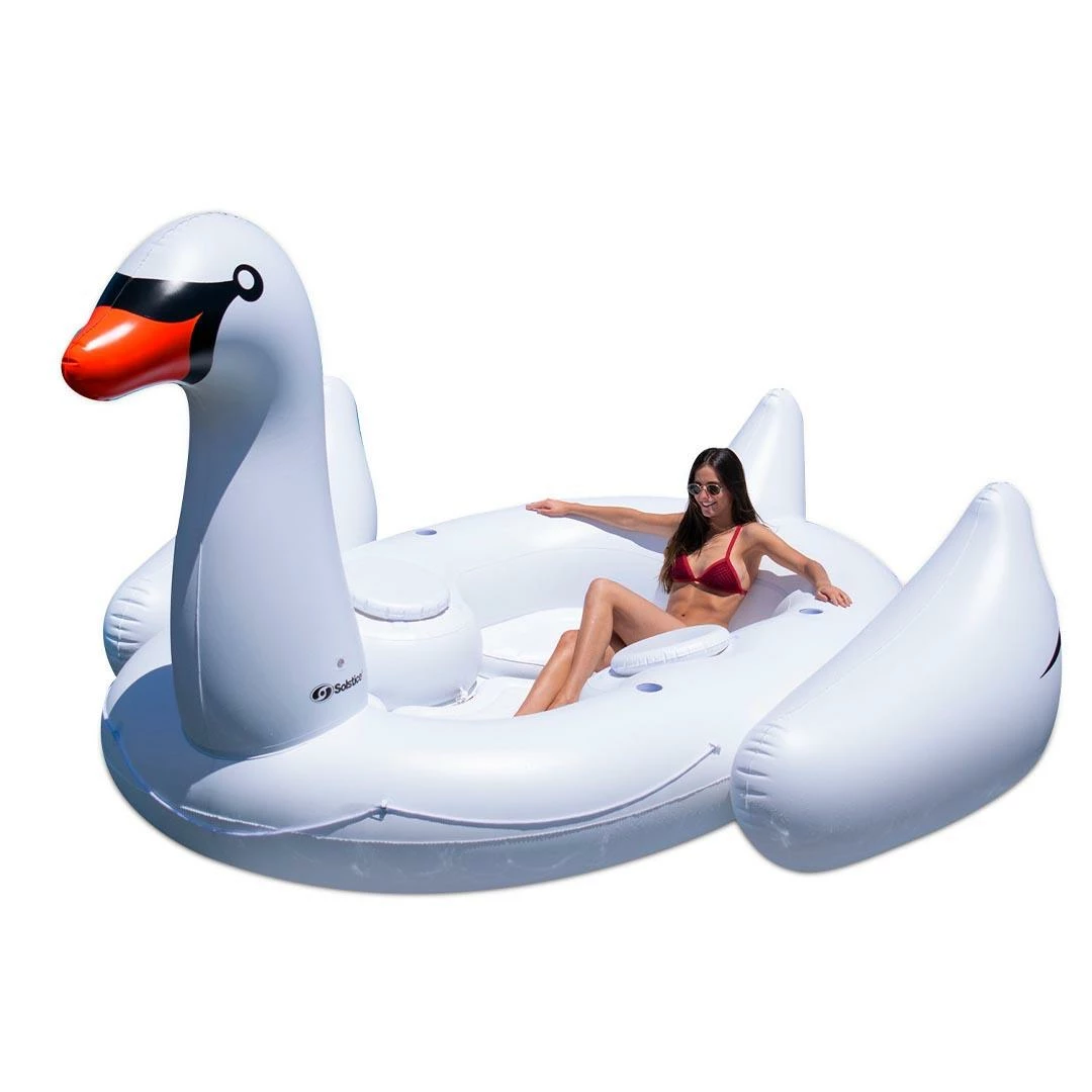 This Solstice Biggest Giant Swan Ride-On Float needs to be in a lake with it tied off to the back of your boat or on a river or in your pool this summer. Measuring 116 inches in diameter and holding up to 995 pounds, this inflatable float will be a hit wherever you and your friends flock to. The swan is lightweight, easy to inflate, and fun for all ages. It is made of heavy-duty vinyl that will assure durability during all of your water fun.